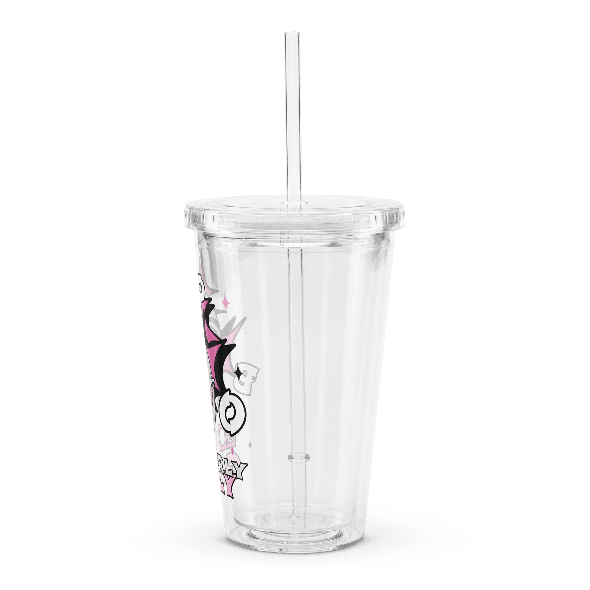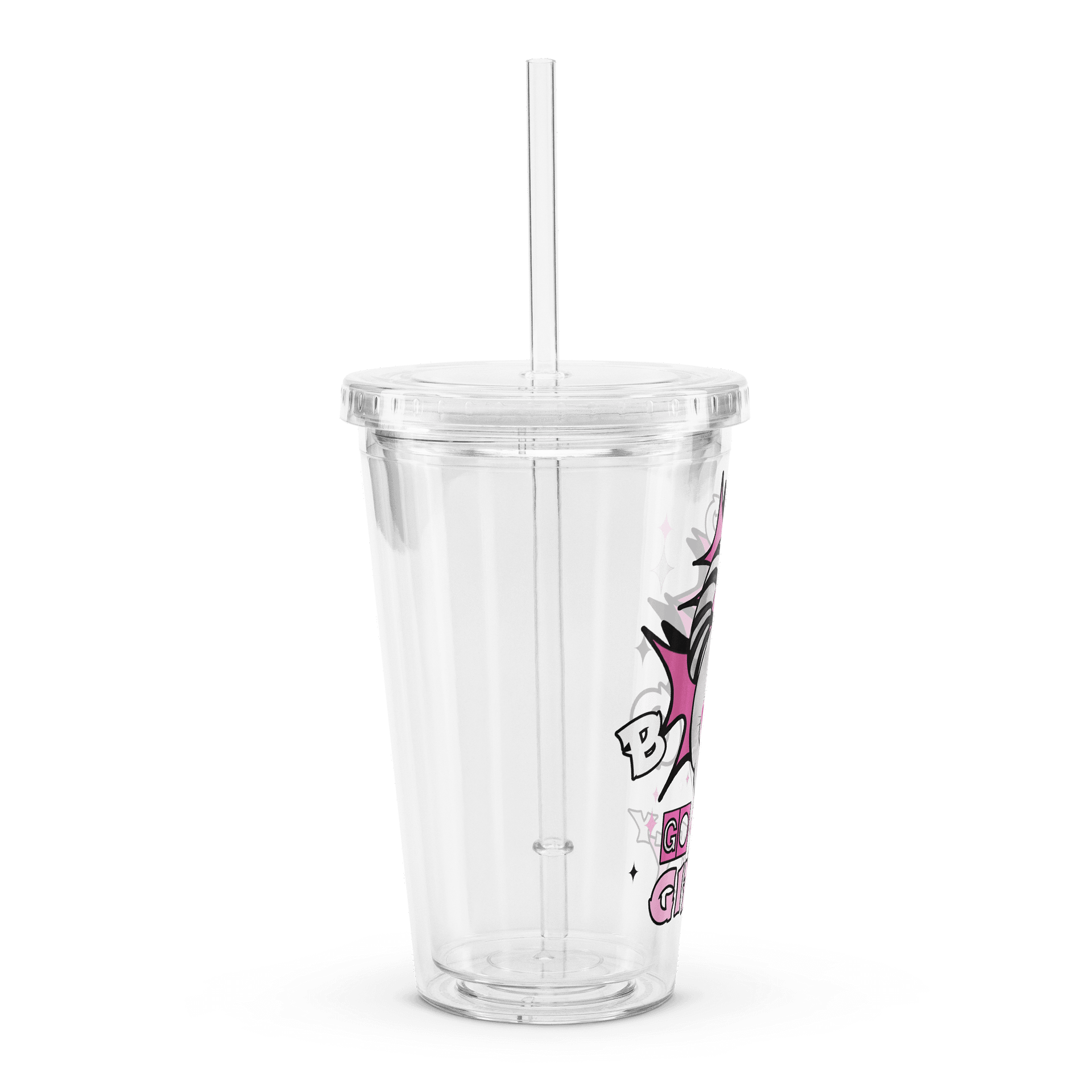 - Comes with a plastic straw and screw-on lid